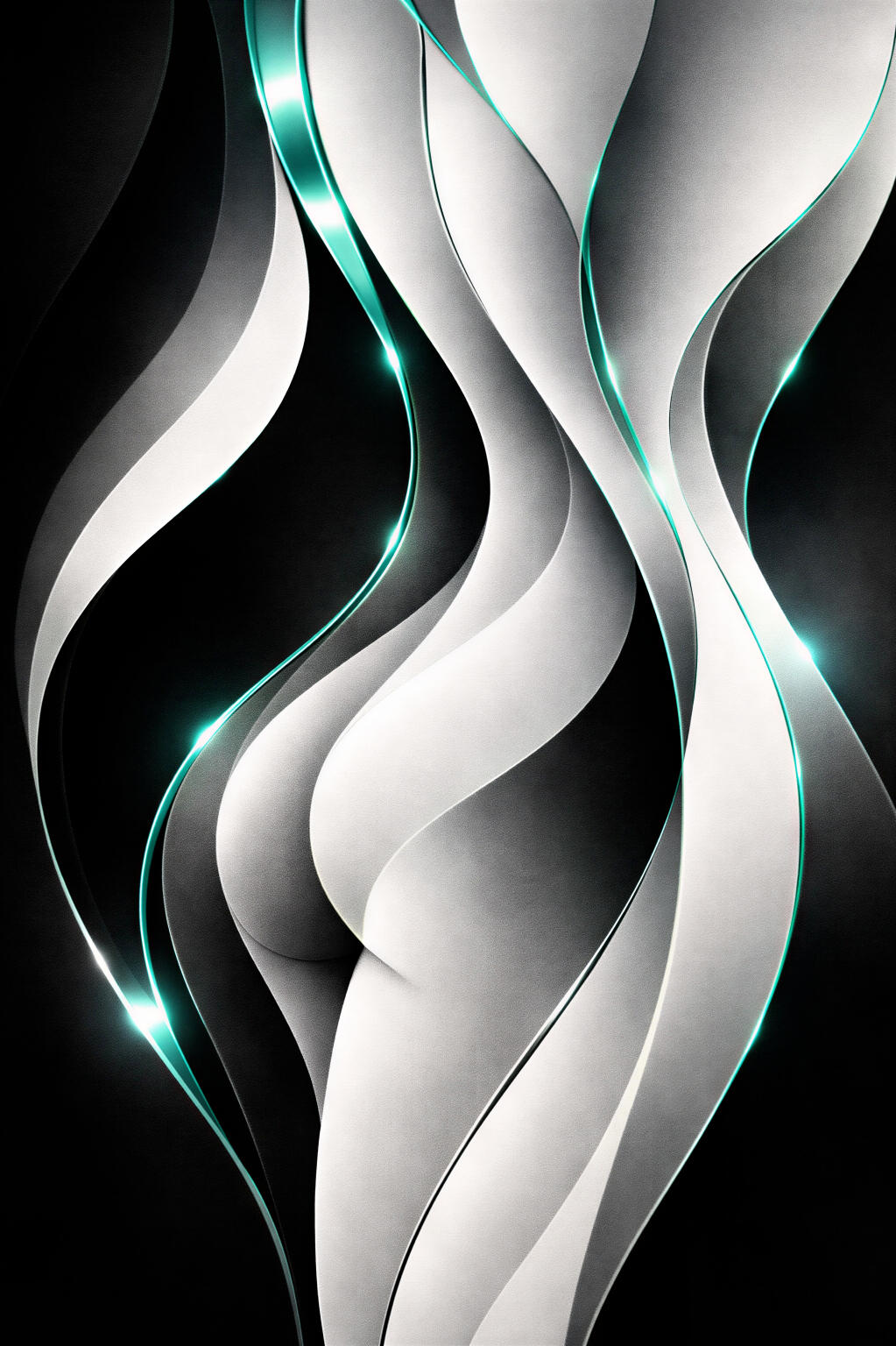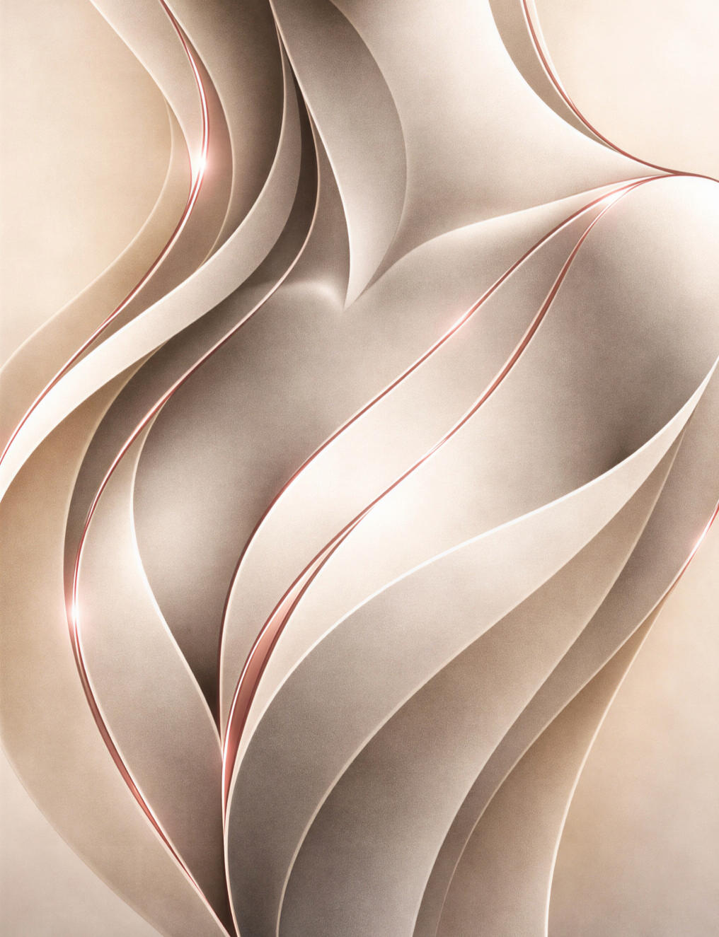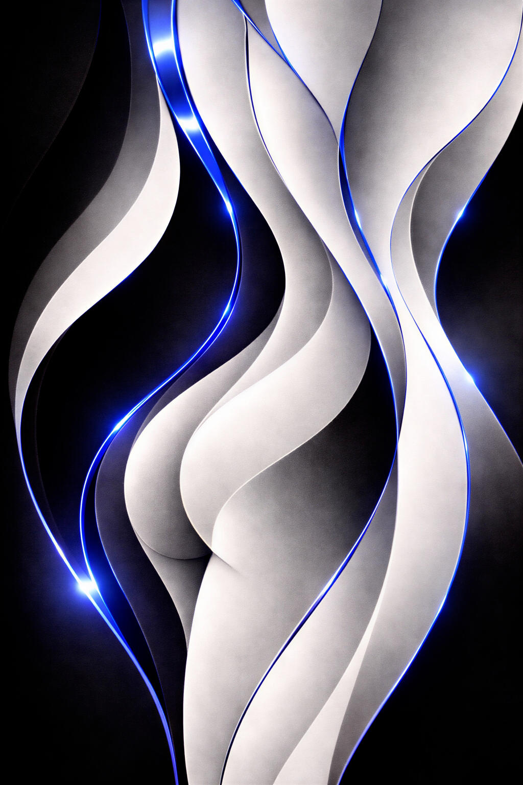A body suggested in light and contour, curves that shift as you look, metallic glimmers catching like skin in motion.